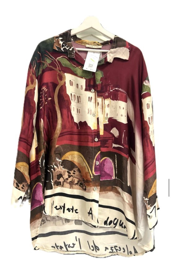 Svetla in elegantna srajca z edinstvenim slikarskim potiskom, ki je popolna izbira za vse, ki želijo izstopati s svojim stilom. Narejena iz 100% viskoze, zagotavlja mehkobo in udobje skozi ves dan. Zgornji del je zapet na gumbe, dolgi rokavi pa dodajo klasičen videz, ki ga lahko nosite tako v prostem času kot tudi na nekoliko bolj formalnih dogodkih.