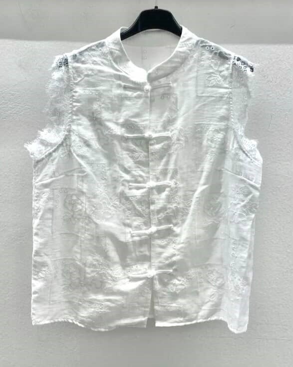 Ta bela bluza s čipko združuje preprostost in ženstvenost v popolno kombinacijo. Izdelana iz lahkega in zračnega materiala, nudi udobje skozi ves dan, medtem ko čipkasti detajli na rokavih in robu dodajo pridih sofisticiranosti. Njen klasičen kroj in subtilni dizajn omogočata enostavno kombiniranje z različnimi kosi, od casual do bolj elegantnih kombinacij.