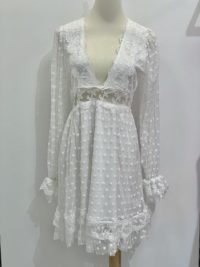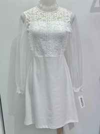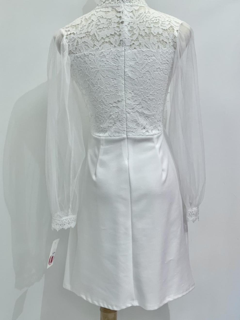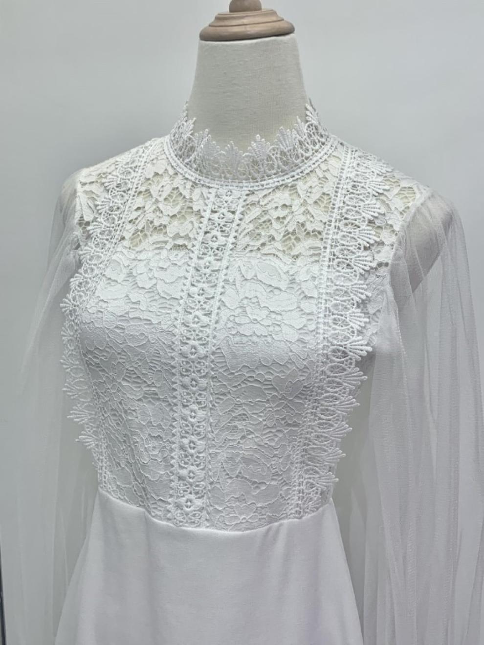 Oblecite se v nežnost in prefinjenost s to čudovito belo čipkasto obleko, ki združuje klasičen dizajn s sodobnim pridihom. Izdelana iz kakovostne čipke, ki nežno objame telo in poudari ženstveno silhueto, je popolna izbira za poroke, svečane dogodke ali posebne trenutke, ko želite zasijati.