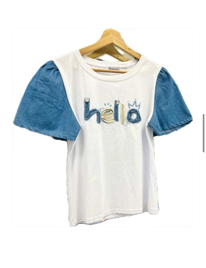 Bela jeans majica “hello”