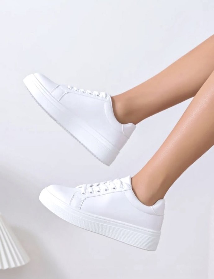 Preproste in elegantne bele superge s platformo, ki so popoln dodatek k vsakodnevnim outfitom. Zasnovane za udobje in enostavno kombiniranje z vsemi oblačili, idealne za vsakodnevno nošenje in preprost, a moden videz.