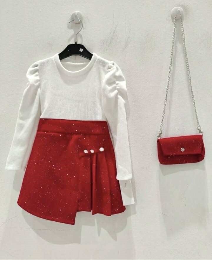 Belo-rdeča obleka za otroke od 2 do 12let je prava izbira za praznične trenutke. Zgornji del je bel z nabranimi rameni, spodnji del pa rdeč z elegantnimi gumbki, okrašenimi s kristalčki in rahlo nabranim materialom, ki ji daje posebnost.
