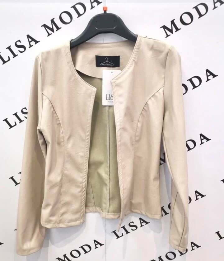 Ta jakna je izdelana iz gladkega, rahlo elastičnega materiala, ki zagotavlja udobno nošenje in lepo prileganje telesu. Zunanjost deluje kot kakovostno umetno usnje, medtem ko notranjost vsebuje mehko podlogo za prijeten občutek na koži. Material je trpežen, enostaven za vzdrževanje in primeren za vsakodnevno uporabo. Kroj je strukturiran, kar dodatno poudari obliko oblačila.