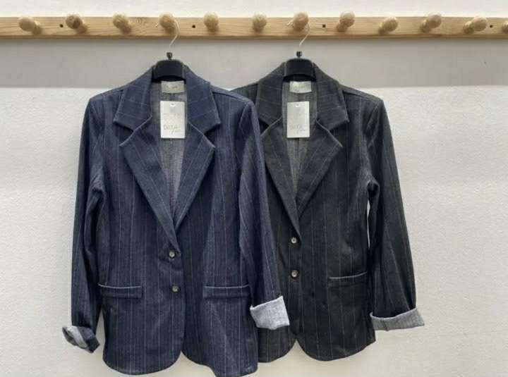 Ujemite pravo mero elegance in samozavesti z blazerjem s črtastim vzorcem. Klasičen kroj z modnim pridihom, idealen za poslovne kombinacije ali sproščene priložnosti. Črte optično podaljšajo postavo in dodajo pridih prefinjenosti.
