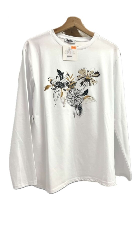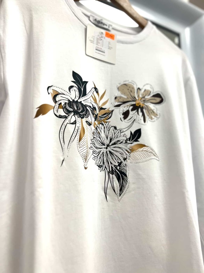 Elegantna in udobna dolga majica iz kakovostnega bombaža, ki prinaša preprostost in stil v enem kosu. Majica je okrašena z različnimi cvetličnimi motivi, ki dodajo moderen in svež pridih. Idealna za vsakodnevne kombinacije, enostavno se kombinira z jeans hlačami, krili ali trenčkotom. Prijetna na dotik in primerna za vse priložnosti, kjer želite izstopati s prefinjenim dizajnom.