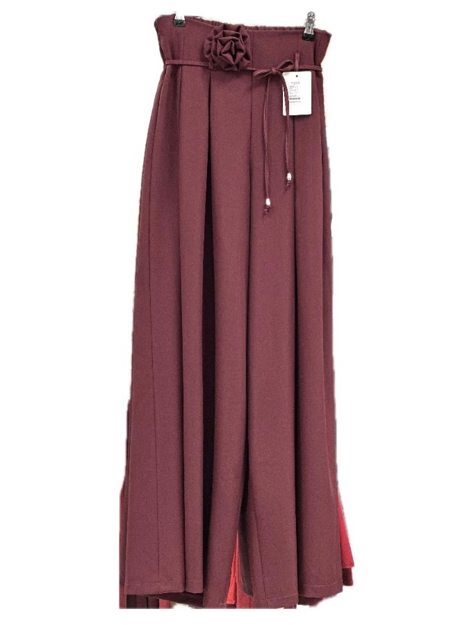 Široke elegantne hlače z rožo, ki poudarijo postavo in dodajo prefinjen slog. Popolne za poslovne in sproščene priložnosti.