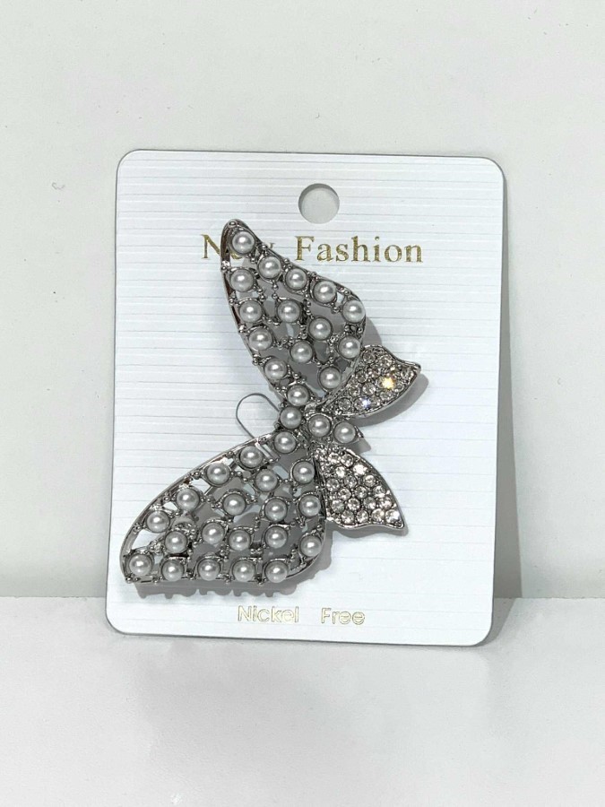 Nežna in očarljiva broška v obliki metulja, skrbno okrašena z drobnimi biserčki. Popolna za dodatek na bluzo, šal ali jakno – doda pridih romantike in prefinjenosti.