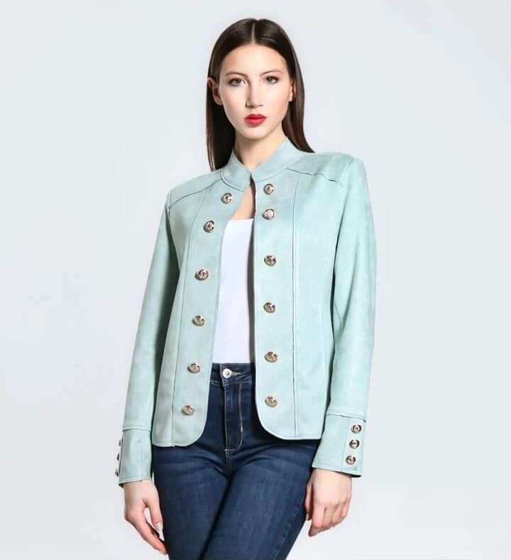 Lahka jakna se lepo poda na kavbojke kot tudi na elegantne hlače. Jakna je iz velurja, ki se ne mečka in je zelo mehak in elastičen. Material: 98% poliester, 2% elastomer