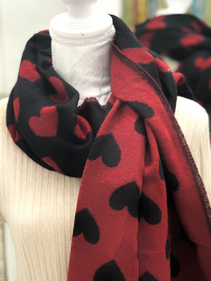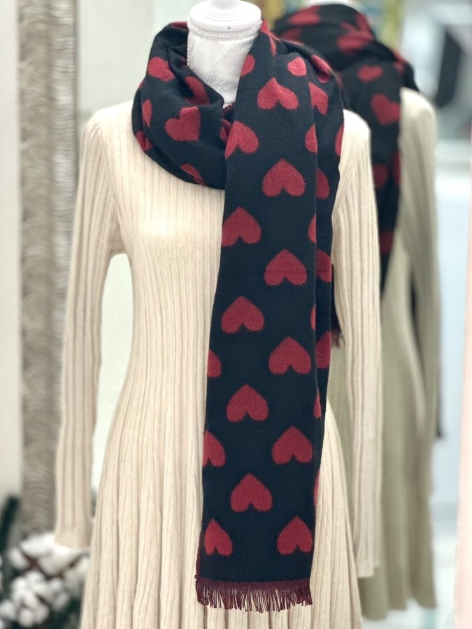 Ta šal v črni barvi z rdečimi srčki je popolna izbira za vse, ki želijo dodati pridih romance in igrivosti svojemu stilu. Narejen iz mehkega materiala, je udoben in prijeten za nošenje, hkrati pa vas bo ogrel v hladnih dneh. Veliki srčki na šalu prinašajo moderen, a hkrati nežen izgled, ki je primeren za različne priložnosti. Robovi s frufruji dodajo še dodatno dinamiko, zaradi česar je šal edinstven in vpadljiv. Enostavno ga kombinirajte z vsakim outfitom za brezskrbno in stilsko prepoznavnost.