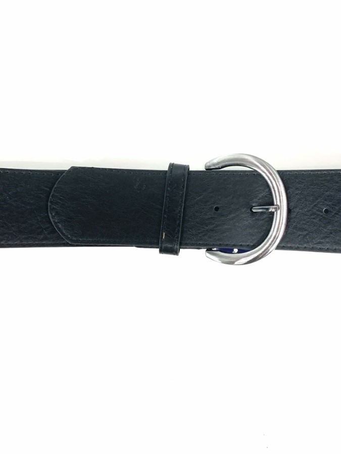 Črn širok pas s srebrno sponko