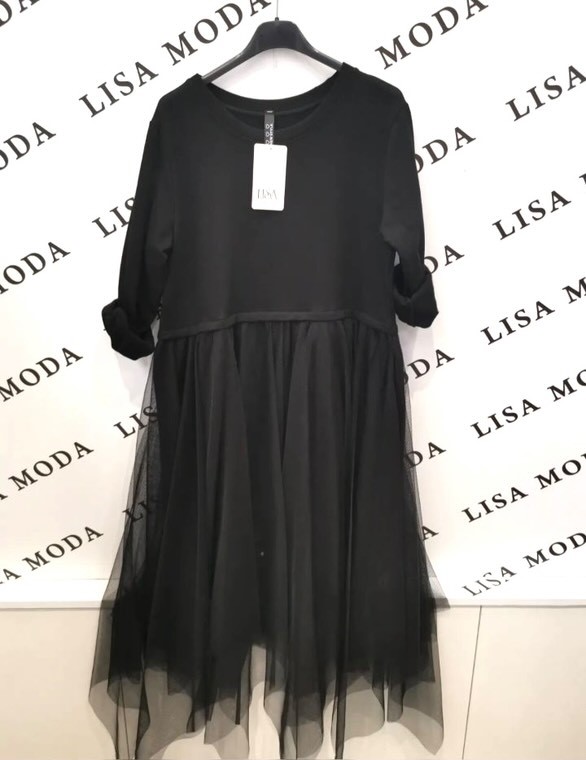 Sijajna črna obleka s tilom za eleganten in romantičen videz. Idealna za zabave, večerje ali posebne dogodke.