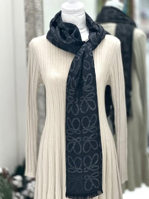 Črna ruta z bleščicami je elegantna in glamurozna izbira, ki bo vašemu videzu dodala pridih sofisticiranosti in sijaja. Temna barva rute je brezčasna in zelo vsestranska, bleščice pa prinašajo subtilen, a opazen svetleči učinek, ki bo pritegnil poglede, ne da bi bil preveč vpadljiv. Mehak material zagotavlja udobje in toplino, medtem ko bleščice dodajo svežino in praznični pridih. Ta ruta je idealna za večerne izhode, posebne priložnosti ali pa kot glamurozen dodatek k vsakodnevnim oblačilom.