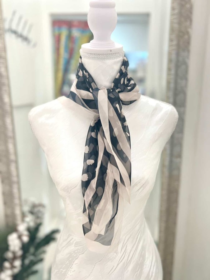 Lahkotna in prefinjena ruta z nežnim vzorcem je popoln dodatek za vsak stil – od poslovne elegance do sproščenih kombinacij. Mehko pada ob vratu in omogoča različne načine zavezovanja. Subtilna barvna kombinacija doda pridih sofisticiranosti vsaki opravi. Idealna izbira za vse letne čase.