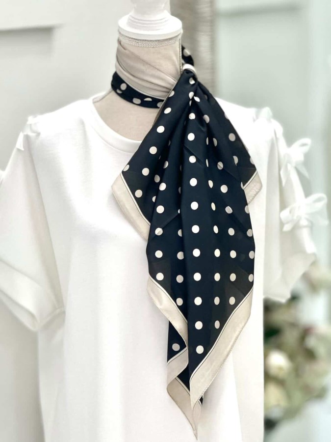 Črno-bež svilena rutka s pikami