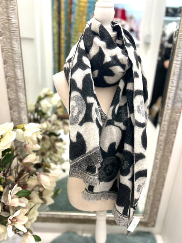 Popoln dodatek za hladne dni — črno‑bel zimski šal združuje klasično eleganco in sodobno grafično noto. S kontrastnim prepletom črne in bele barve boste ustvarili vizualno močan, a vsestranski kos, ki dopolni tako urbani kot minimalistični zimski stil.