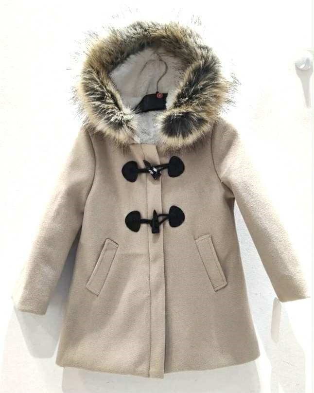 Dekliški bež plašč s krznom okoli kapuce je eleganten in topel kos za otroke od 4 do 14 let. Narejen iz prijetnega materiala, z notranjim oblazinjenjem za dodatno udobje, zagotavlja zaščito pred mrazom in hkrati moderen videz. S praktično zadrgo in dvema gumboma je enostaven za oblačenje in popoln za hladne dni.