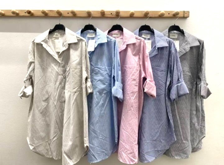 Klasične srajčne obleke v nežnih črtastih vzorcih združujejo brezčasno eleganco in sproščeno udobje. Rahlo A-linijski kroj lepo pada ob telesu, gumbna zapenjača in zavihani rokavi pa dodajo moderen, vsakodnevno nosljiv značaj. Izdelane so iz lahkega in zračnega bombaža z dodatkom elastana, ki omogoča prijeten občutek na koži, naravno zračnost ter udobno gibanje skozi ves dan. Popolna izbira za urbane sprehode, službo ali sproščene butične kombinacije.