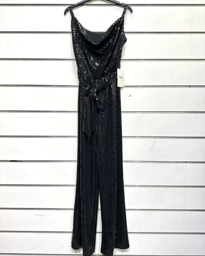 Stopite v središče pozornosti s tem edinstvenim svetlečim kombinezonom, ki združuje eleganco in drznost v enem. Izdelan iz kakovostnih materialov, ki ujamejo svetlobo in ustvarijo čudovit, sijoč videz, je popolna izbira za večerne zabave, gala dogodke ali posebne priložnosti, kjer želite izstopati.