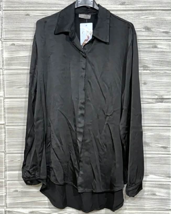 Elegantna črna srajca iz lahkotnega, mehko padajočega materiala, ki zagotavlja udobje in brezčasen stil. Popolna za poslovne kombinacije, večerje ali bolj sproščene outfite, saj se lepo prilega.