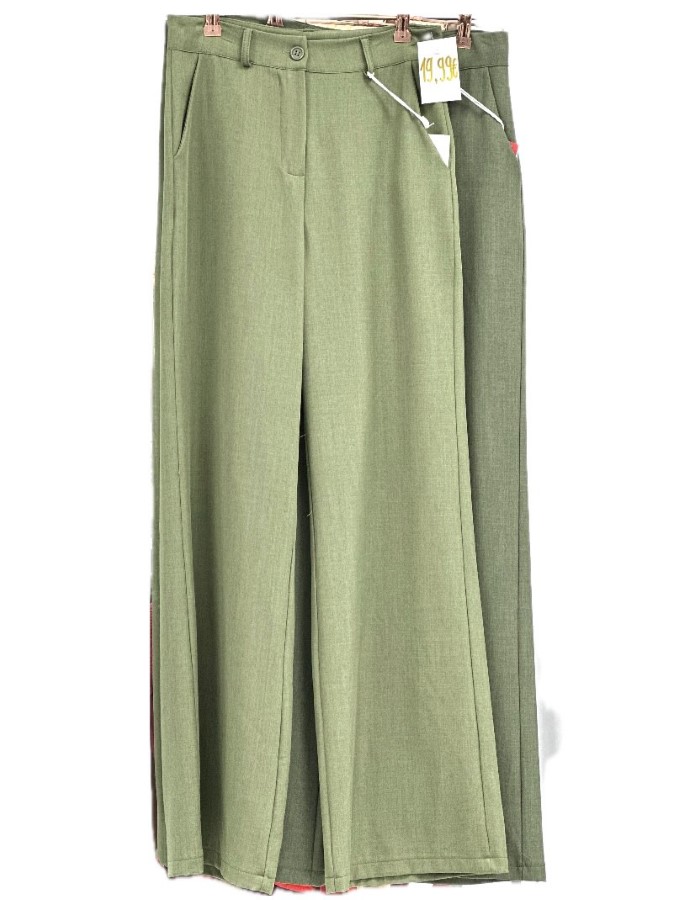Te hlače v zeleni barvi so popoln dodatek k vaši garderobi, saj nudijo eleganten in sproščen videz hkrati. So široke, udobne in primerne za različne priložnosti, od vsakodnevnih aktivnosti do bolj sproščenih poslovnih okolij. Zasnovane so z visokim pasom in prostornim krojem, ki zagotavlja udobje skozi ves dan. Material je kakovosten in prijeten na dotik, zaradi česar so odlična izbira za dolgotrajno nošenje. Idealne za kombiniranje z različnimi zgornjimi kosi, kot so majice, bluze ali puloverji.