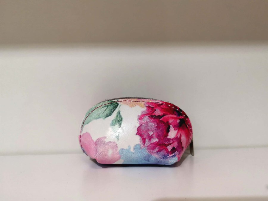 Denarnica je izdelana iz gladkega umetnega usnja s sijočim zaključkom in mehkim cvetličnim potiskom. Material je prožen, a hkrati dovolj čvrst, da ohranja obliko. Površina je odporna na vsakodnevno uporabo in enostavna za čiščenje. Nežen dizajn dopolnjuje kakovostna izdelava.