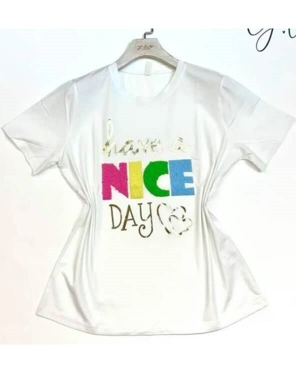 Ta kratka majica z napisom “Nice Day” je preprost, a pozitiven kos, ki vsakemu outfitu doda sproščen in optimističen pridih. Narejena iz mehke in zračne tkanine, zagotavlja celodnevno udobje, medtem ko minimalističen potisk omogoča enostavno kombiniranje z različnimi stili.