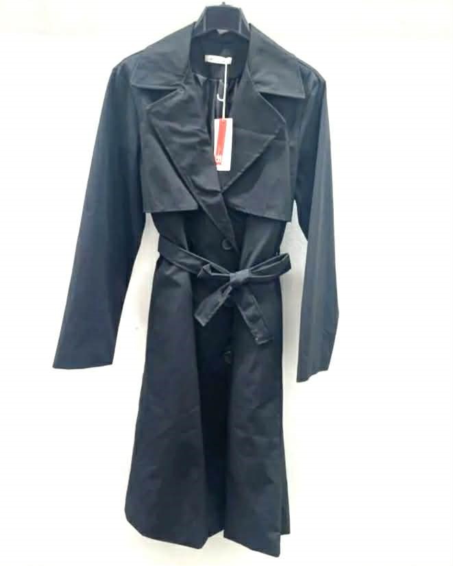 Eleganten plašč s pasom in gumbi, narejena iz trpežnega materiala, ki zagotavlja toploto in udobje v prehodnih obdobjih.