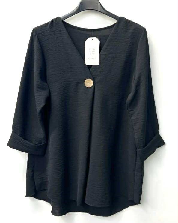 Elegantna in zračna bluza iz lahkega materiala, z nežnim zapenjanjem na gumb spredaj. Idealna za vsakodnevno eleganco in brezskrben slog.