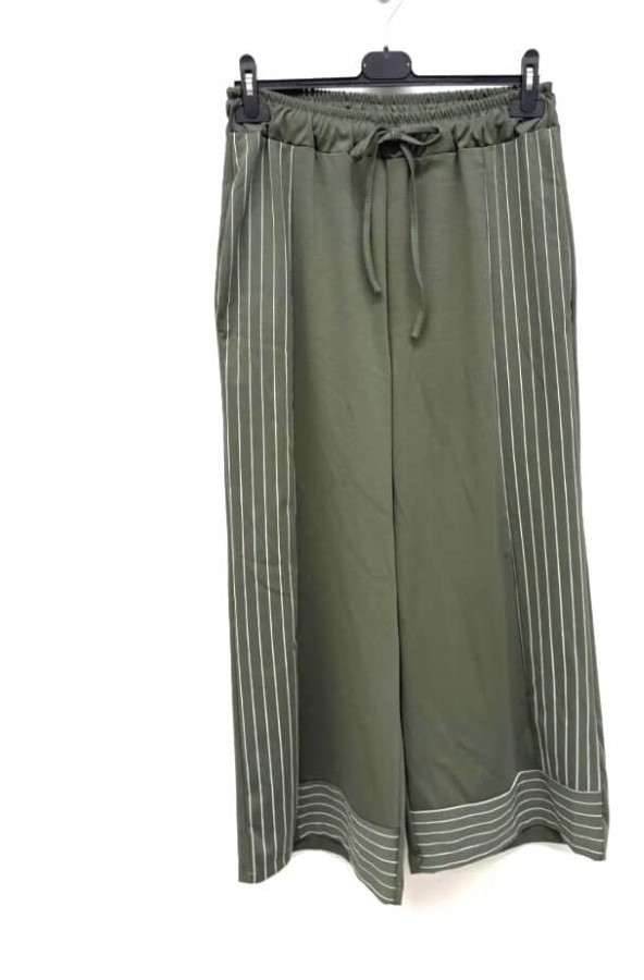 Lahkotne široke hlače z elastičnim pasom in zavezovanjem za popolno prileganje. Izdelane iz prijetnega, zračnega materiala, ki omogoča udobno nošenje skozi ves dan. Stranski paneli z diskretnimi črtami dodajo moderen in športno-eleganten videz. Ravni kroj poskrbi za sproščeno silhueto.