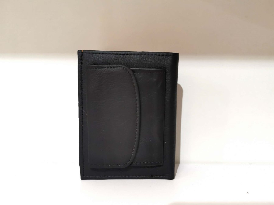 Preprosta in elegantna črna denarnica je izdelana iz gladkega naravnega usnja. Material je prožen, vzdržljiv in prijeten na otip. Minimalističen videz poudarja kakovostno obdelano usnje in natančne šive. Sčasoma usnje pridobi značilno patino, ki še poudari njen naravni videz.
