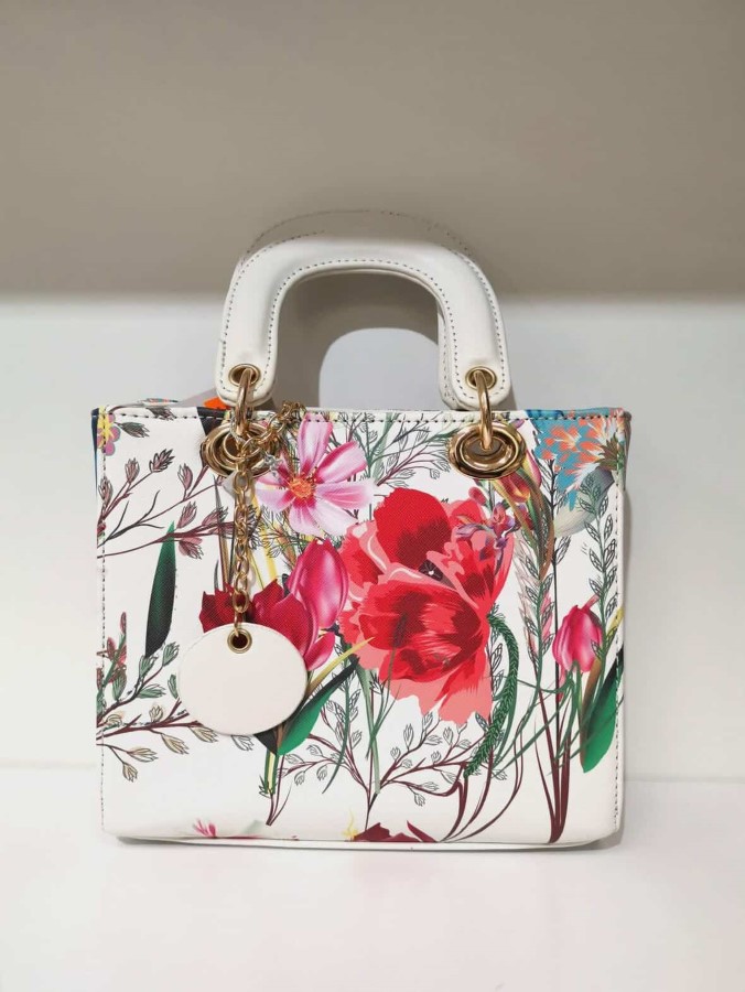 Torba je izdelana iz umetnega usnja z gladko površino in potiskanim vzorcem. Čvrsti ročaji omogočajo stabilno in udobno nošenje. Kovinski obročki in dodatki prispevajo k trpežnosti in elegantnemu zaključku. Prostorna notranjost zagotavlja dovolj prostora za vsakodnevne potrebščine.