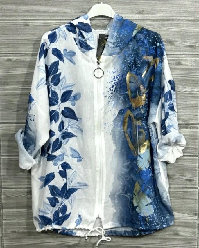 Lahkotna jakna z zadrgo očara z edinstvenim modrim cvetličnim vzorcem in umetniškim pridihom. Praktičen kroj z nastavljivim spodnjim robom omogoča popolno prileganje. Mehki material zagotavlja udobje skozi ves dan.