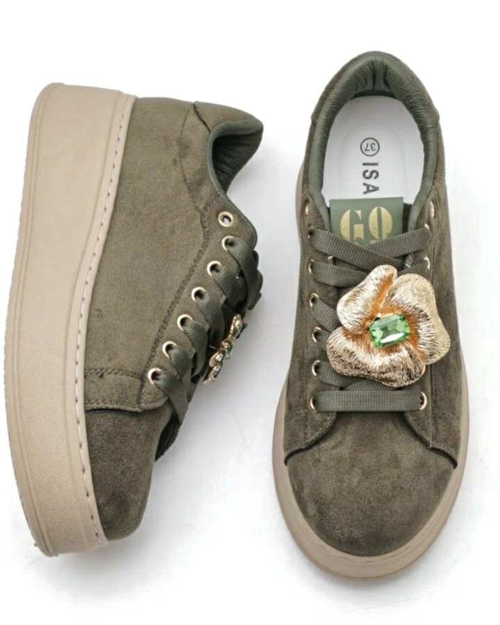 Olivno zeleni žametni čevlji