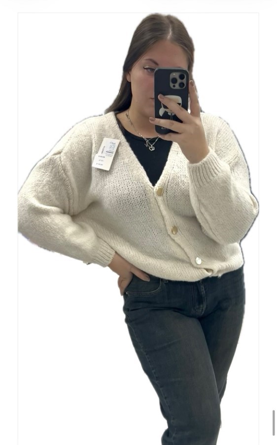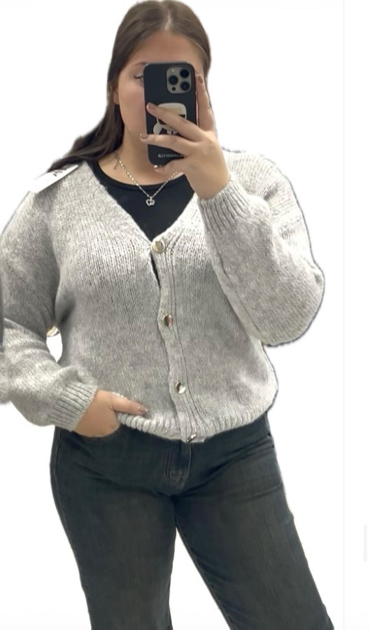 Klasična in udobna pletena jopa z gumbi, ki jo enostavno oblečeš in združiš s katerimkoli kosom. Idealna za vsakdanjo eleganco in toplino v hladnejših dneh.