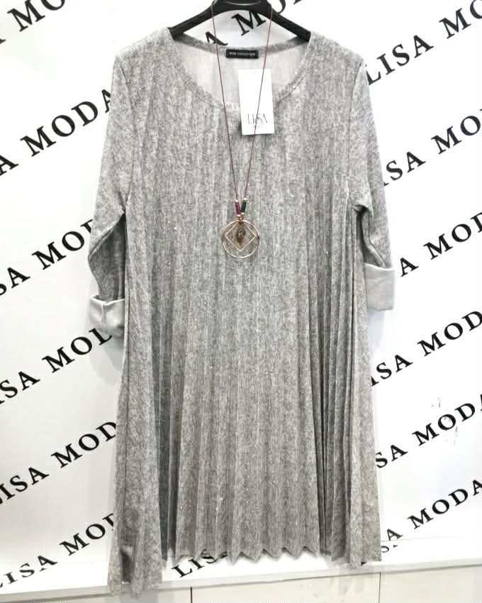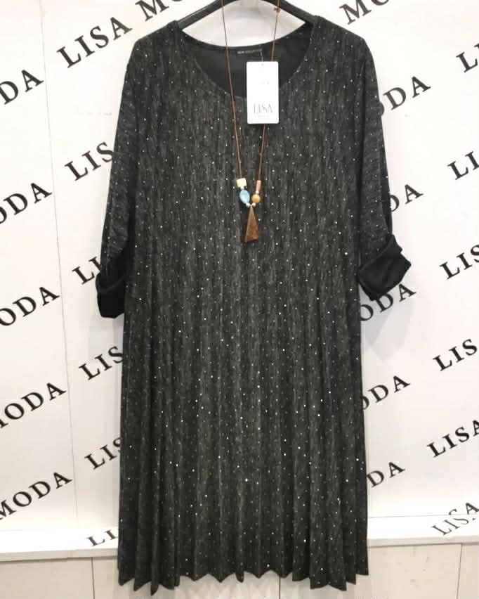 Oblecite se v glamur s to čudovito plisirano obleko, okrašeno z bleščicami! Njena lahkotna tkanina in subtilen sijaj zagotavljata očarljiv videz, medtem ko plisirani detajli ustvarjajo dinamičen in ženstven silhuet. Obleka je popolna za večerne zabave, praznovanja ali posebne priložnosti, kjer želite zasijati. S kombinacijo elegance in modernih detajlov boste zagotovo v središču pozornosti.