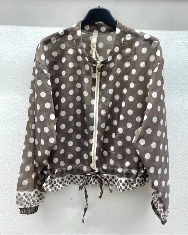 Ta rjava pikčasta jopa združuje retro šarm z modernim pridihom. Zasnovana iz mehkega materiala, vam bo nudila udobje in toplino skozi ves dan, medtem ko pikčast vzorec doda igriv in svež videz. Klasičen kroj in prijetna barva omogočata enostavno kombiniranje z različnimi stili.