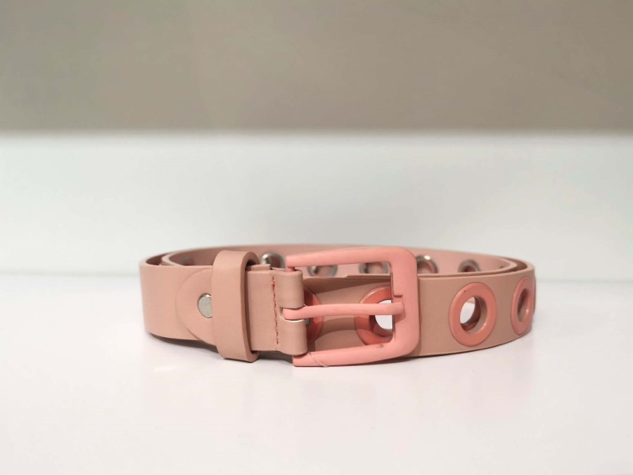 Trendovski pas v nežni roza barvi, ki popestri vsak outfit. Okrasne kovinske zanke dodajo moderen in igriv videz, medtem ko barvno usklajena zaponka ustvarja celovit dizajn. Odličen dodatek za obleke, tunike ali kavbojke. Popolna izbira za poudarek pasu in svež modni videz.