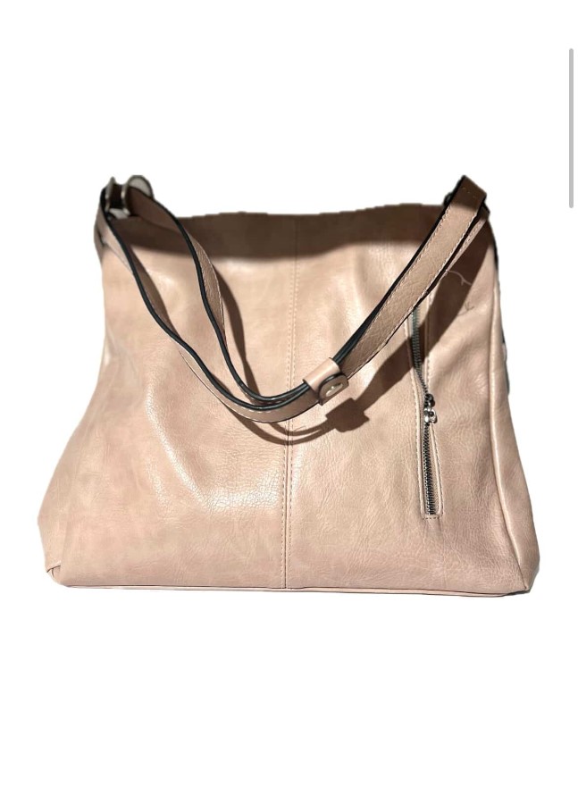 Prostorna torba v nežni roza barvi je popolna izbira za vsakodnevno uporabo ali poslovne priložnosti. Klasičen kroj z mehko strukturo omogoča udobno nošenje na rami, medtem ko zunanji žep z zadrgo poskrbi za hiter dostop do najnujnejših stvari. Preprost in brezčasen dizajn se odlično poda k različnim stilom – od casual do elegantnega.