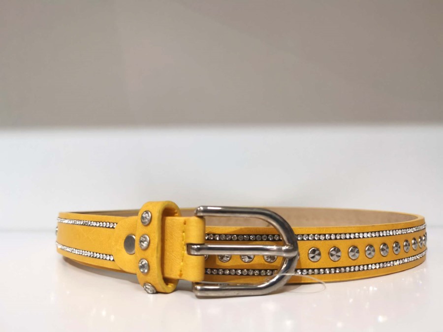Drzen rumeni pas z dekorativnimi kamenčki in kovinskimi detajli je popoln modni poudarek vsakega stajlinga. Sijoči elementi dodajo pridih glamurja, medtem ko klasična kovinska zaponka poskrbi za praktičnost. Odlično se poda k jeansu, oblekam ali tunikam ter popestri tudi najbolj preprost videz. Idealen je za vse, ki želijo izstopati.