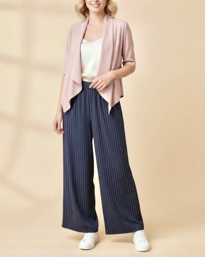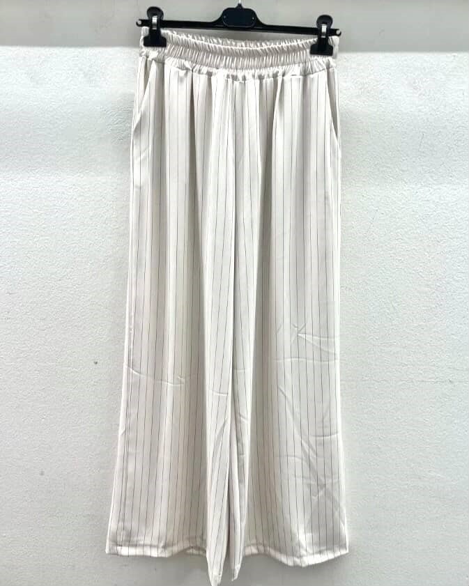 Te široke hlače z črtami so popolna izbira za tiste, ki iščejo eleganten in sproščen videz. Klasične črte na hlačah dodajo dolžino in poudarijo postavo, medtem ko širok kroj zagotavlja udobje in svobodo gibanja. Narejene iz lahkih in prijetnih materialov, so idealne za vsakodnevno nošenje ali nekoliko bolj formalne priložnosti.