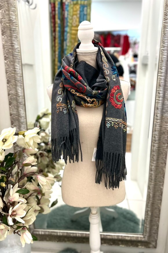 Elegantna izbira za vsak dan – siv šal z vzorci združuje klasično barvo in subtilno izražen dizajn. Mehka, lahkotna tkanina lepo pade in se udobno nosi, vzorci pa dodajo ravno pravšen poudarek, ki šal loči od običajnih enobarvnih modelov. Odličen za poslovne ali sproščene stilske kombinacije.