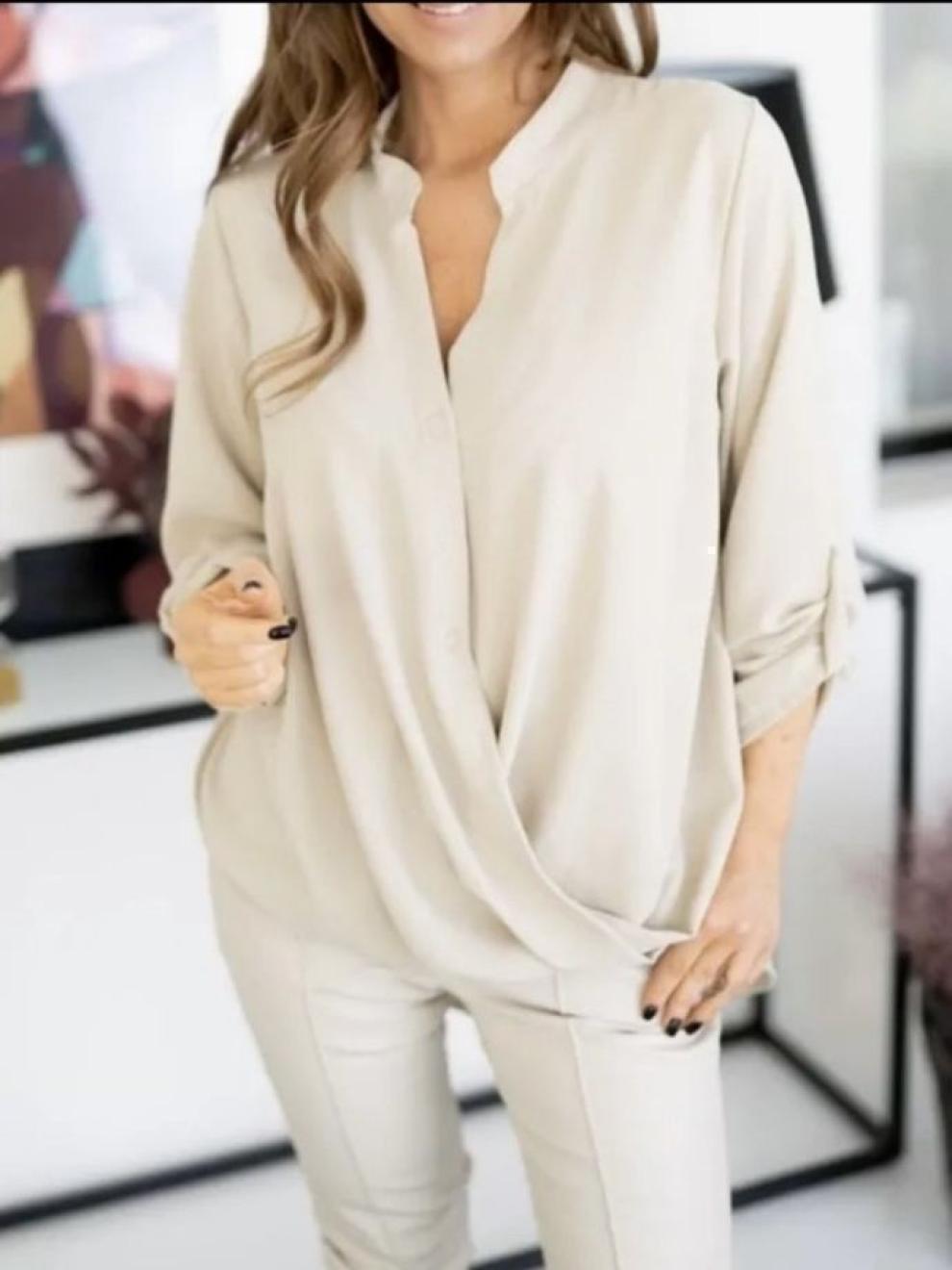 Kombinacija klasične srajce in ženstvene bluze – popoln kos za urejen, a sproščen videz. Vsestranska izbira za službo, prosti čas ali večerne priložnosti.
