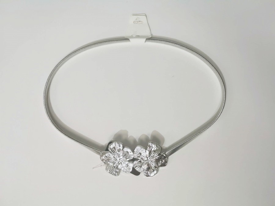 Prefinjen kovinski pas z dekorativnima cvetovoma v srebrnem tonu je popoln modni dodatek za eleganten videz. Minimalistična oblika z nežnim sijajem lepo poudari pas in dopolni obleke, tunike ali svečane kombinacije. Cvetlični detajl doda ženstven in romantičen pridih. Primeren je tako za posebne priložnosti kot za popestritev vsakodnevnega stila.