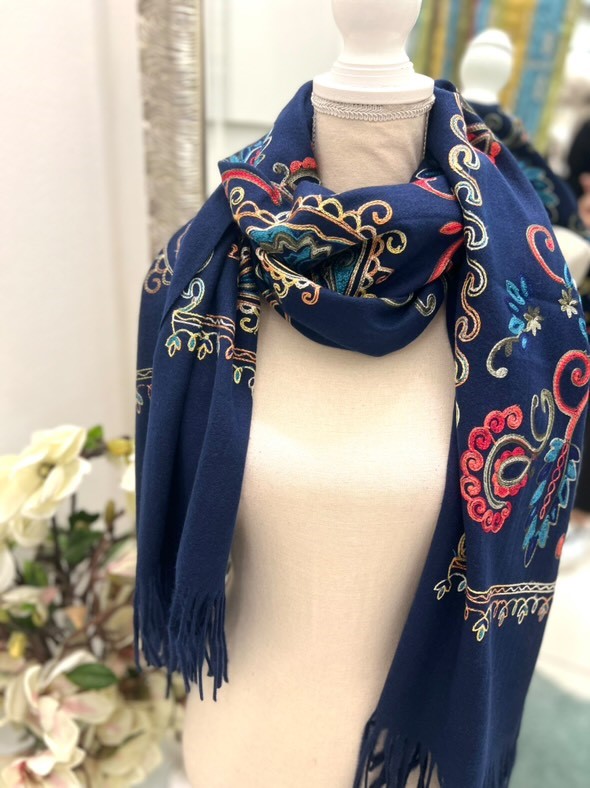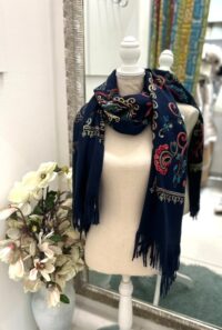 Elegantna izbira za vsak dan – temno moder šal z vzorci združuje klasično barvo in subtilno izražen dizajn. Mehka, lahkotna tkanina lepo pade in se udobno nosi, vzorci pa dodajo ravno pravšen poudarek, ki šal loči od običajnih enobarvnih modelov. Odličen za poslovne ali sproščene stilske kombinacije.