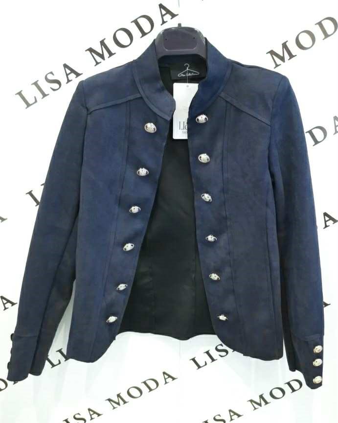 Ravnovesje med klasičnim in sodobnim. Temno modra barva v kombinaciji z zlatimi gumbi ustvarja sofisticiran videz, ki spominja na uniformo s stilom. Popolna za eleganten vsakdan ali večerni izhod.