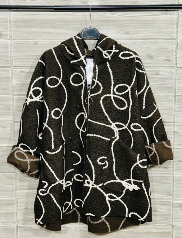 Stilska in udobna – ta topla vzorčasta jopa ali jakna je idealna izbira za hladnejše dni. Izstopa z edinstvenim vzorcem, mehko tkanino in udobnim krojem, ki poskrbi za toplino in modni videz hkrati.