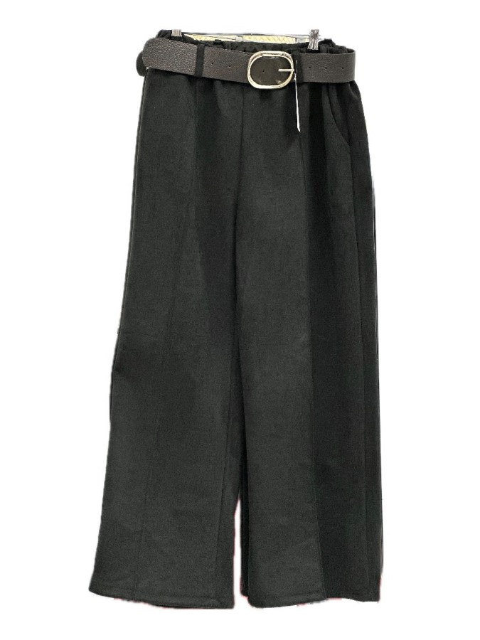 Te črne hlače z elegantenim pasom in zavihanimi robovi so popolna izbira za sproščene, a trendovske kombinacije. Imajo širok in udoben kroj, ki omogoča enostavno gibanje, medtem ko pas poudari postavo in doda moderen pridih. Kakovosten material zagotavlja udobje in dolgotrajno nošenje, medtem ko preprost, a eleganten dizajn omogoča enostavno kombiniranje z različnimi zgornjimi kosi, od preprostih majic do bolj formalnih srajc. Idealne za vsakodnevno nošenje ali za bolj sproščene poslovne priložnosti.
