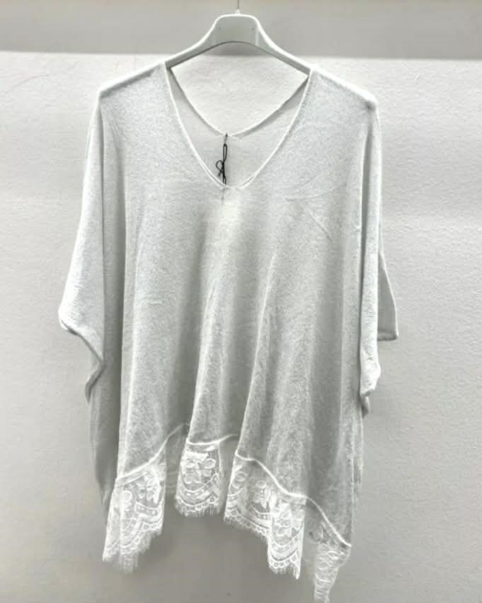 Preprosta tunika s čipkastim robom, narejena iz mehkega bombaža. Popolna za sproščene dni.