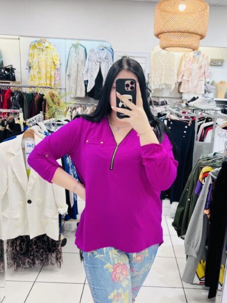 Ta elegantna tunika združuje stil in udobje v enem. Izdelana iz mehkega materiala, ki se ne mečka, ponuja brezskrbno nošenje ves dan. Tuniko lahko nosite na dva načina: kombinirajte jo s svojimi najljubšimi hlačami za sproščen, a prefinjen videz.