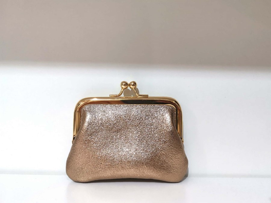Prestižna denarnica iz mehkega umetnega usnja z metalnim sijajem. Material ima rahlo zrnato teksturo, ki poudari njen eleganten videz. Je prijetna na dotik, trpežna in primerna za vsakodnevno uporabo. Klasičen dizajn v kombinaciji z bleščečo površino ustvarja brezčasen videz.